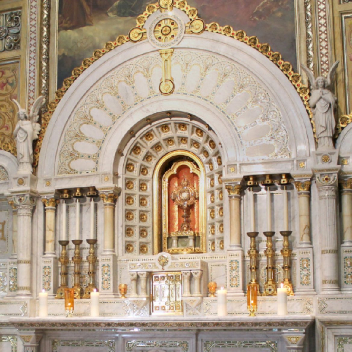 Through perpetual eucharistic adoration, we offer to God continuous praise and thanksgiving before the Blessed Sacrament exposed on the altar. Nurtured and strengthened by Jesus' presence, we live out this adoration in our daily lives as we strive to help those in need.