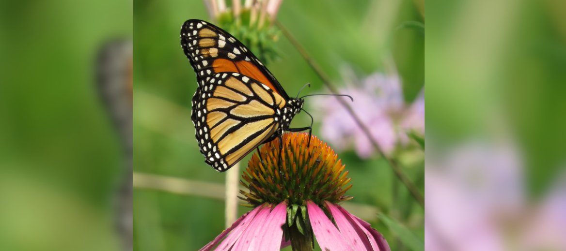 In the same native prairie, a monarch dines on delicious purple coneflower nectar. Vivid colors assail my vision as I watch the show from the forest’s edge. He depends on the nectar for his migration. The coneflower is often the most noticeable in the natural prairies of the Midwest, feeding monarch butterflies, sphinx moths, honeybees, bumblebees and other pollinators. It feasts as well, stretching its strong, green stem to reach the rays of the sun, part of the miracle that is photosynthesis.
