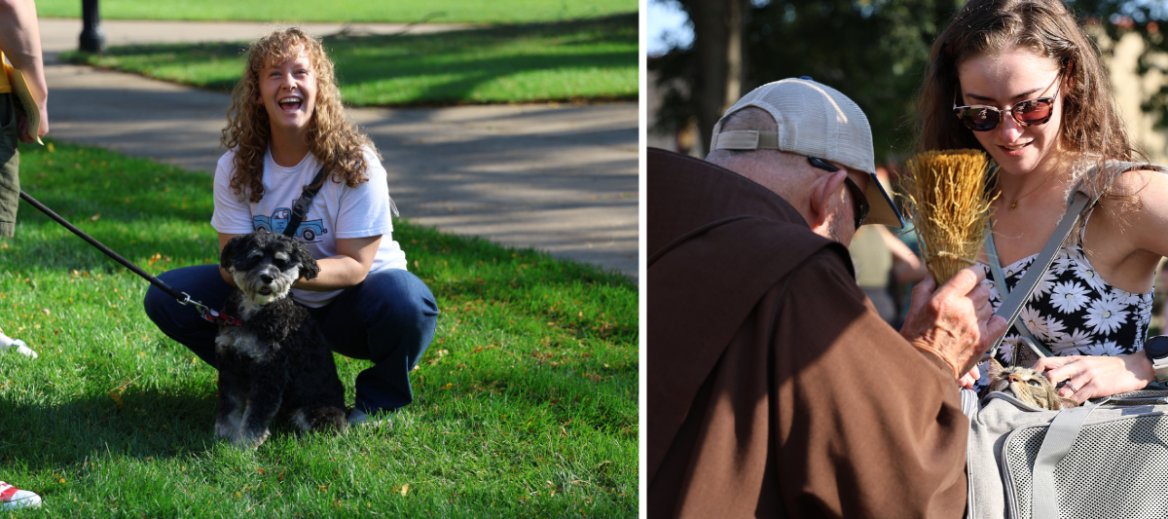 To celebrate the feast day and the 800th anniversary of the Canticle, the FSPA and the Franciscan Spirituality Center collaborated with Viterbo Campus Ministry. Together, they organized a Blessing of the Pets and pet supply drive at Viterbo University. The blessing brought together nearly 80 community members with their furry and feathered friends. It was a chance to celebrate beloved pets and the spirit of St. Francis.
